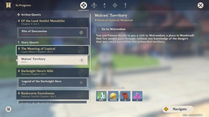 Archon quests are the main storyline you follow in the game. It also gives the most adventure rank experience points in the game but it is also level-gated when you finish it early. So every time you finish the archon questline and finish and act, you will need to reach another specific adventure rank to start every other act. It is a great idea to dash of exploration while doing the main archon quest.