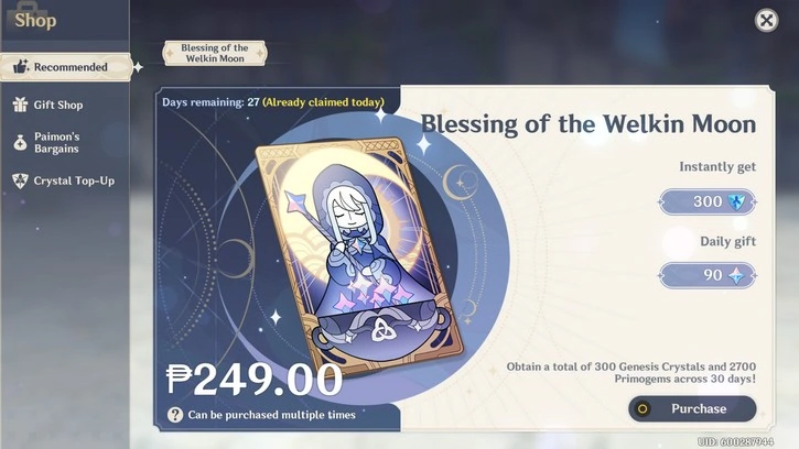 The monthly Genshin Impact packs are the holy grail of all gacha games. It always gives out the most value in terms of real money currency to in-game currency ratio. In Genshin Impact, they are more generous with their monthly pack considering how hard it is to get Primogems after you exhaust all options. As you can see from our previous Primogems guide, they are extremely limited and the farmable method is only through completing daily commissions.